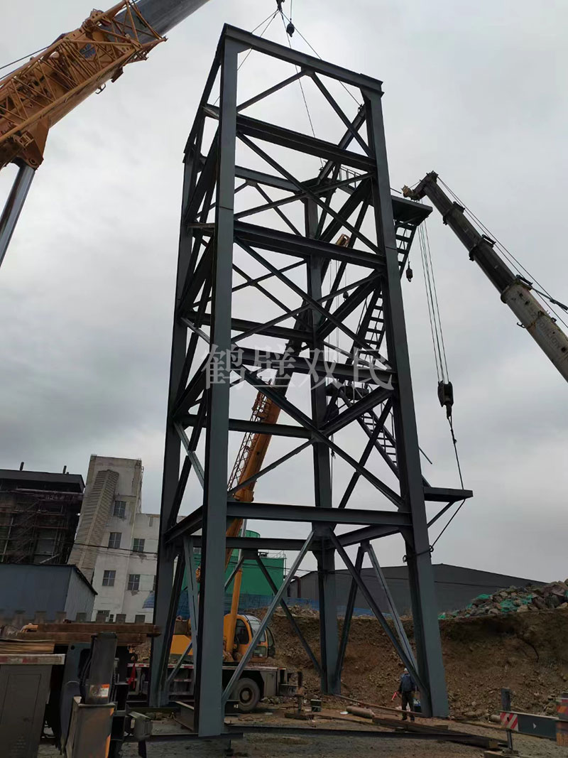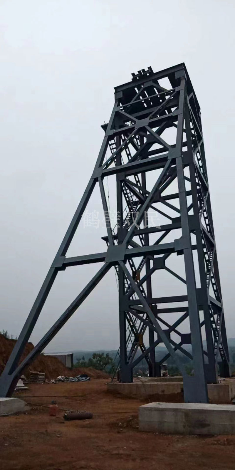 斜撐式永久井架主要特征和優點: 單斜撐式井架是隨著落地式多繩地上計技術發展而產生的,具有造型獨特,結構簡單,受力合理,工程量少,經濟實用,技術進步的特點。