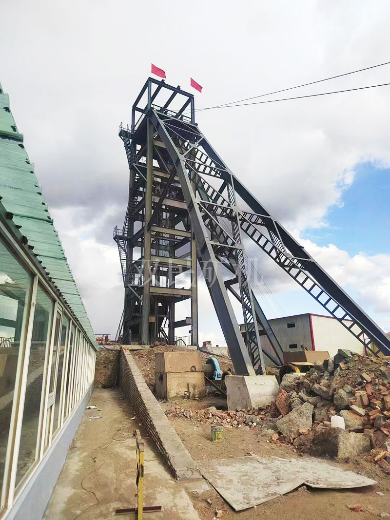 斜撐式永久井架主要特征和優(yōu)點(diǎn): 單斜撐式井架是隨著落地式多繩地上計(jì)技術(shù)發(fā)展而產(chǎn)生的,具有造型獨(dú)特,結(jié)構(gòu)簡(jiǎn)單,受力合理,工程量少,經(jīng)濟(jì)實(shí)用,技術(shù)進(jìn)步的特點(diǎn)。
