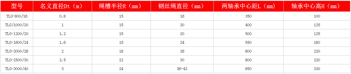 鑿井懸吊天輪是按JZ系列鑿井絞車鋼絲繩最大靜張力分別為5t(50kN),10t(100kN),16t(160kN),25t(250kN),40t(400kN)進行配套設計的。