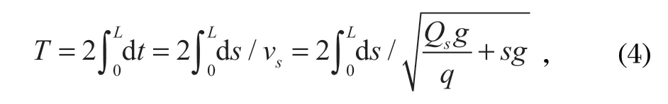 振動(dòng)波周期法是依據(jù)振動(dòng)波在鋼絲繩上的傳遞速度和鋼絲繩張力的關(guān)系,通過速度傳感器測(cè)量鋼絲繩振動(dòng)波周期,得到傳遞速度,進(jìn)而計(jì)算出鋼絲繩張力。