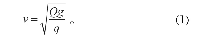 在井口附近位置,對(duì)罐道繩某一點(diǎn)施加一垂直沖擊力,使罐道繩產(chǎn)生橫向振動(dòng)。振動(dòng)波在鋼絲繩上的傳遞速度與鋼絲繩所受張力的關(guān)系如下: