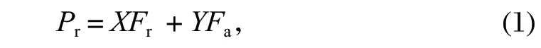 式中:Pr 為聯合載荷下軸承徑向當量動載荷,N;Fr為軸承徑向動載荷,N;Fa 為軸承軸向動載荷,N。