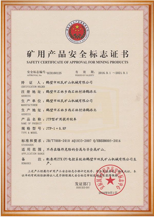 礦用產品安全標志證書